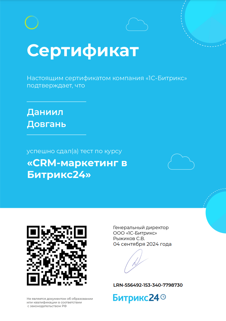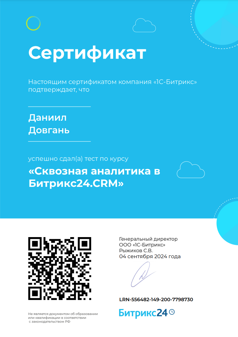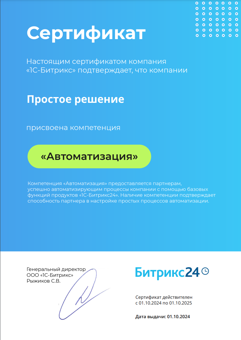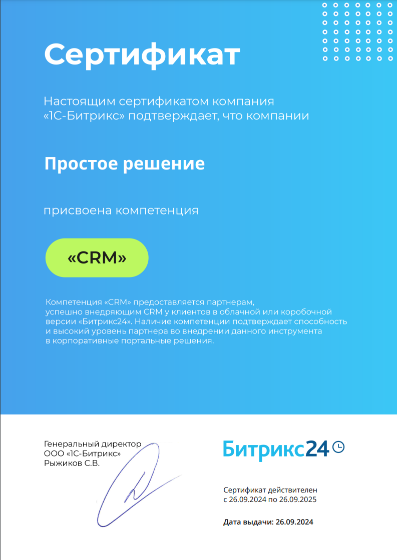 Мы также имеем статус Золотого Партнёра 1С: Bitrix24. Все наши настройки производятся на высочайшем уровне и полностью соответствуют лучшим стандартам в настройке CRM-систем и бизнес-процессов.