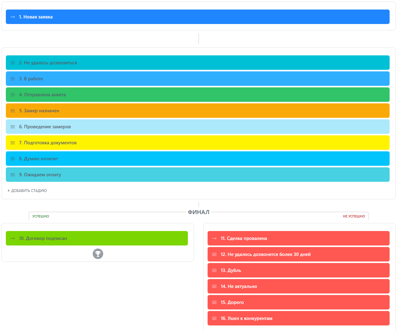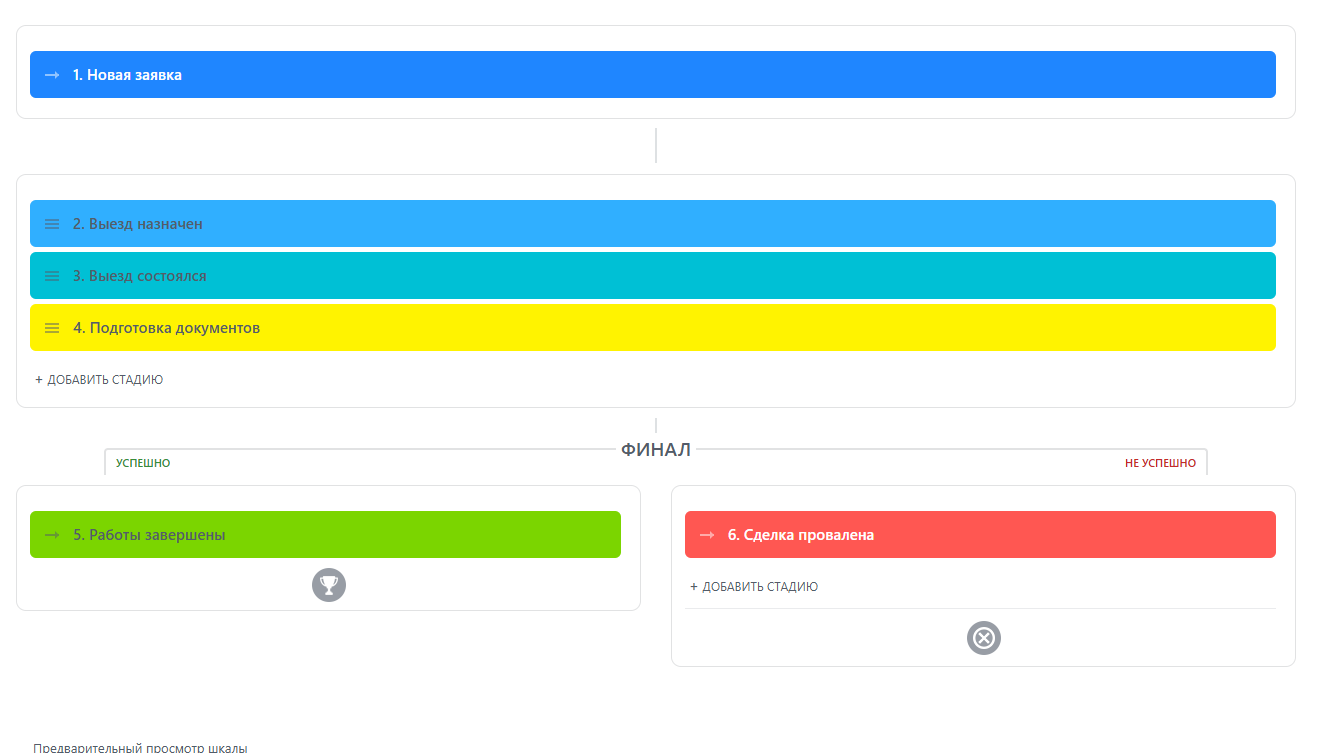 - Создание и настройка стадий воронки "Исполнение".